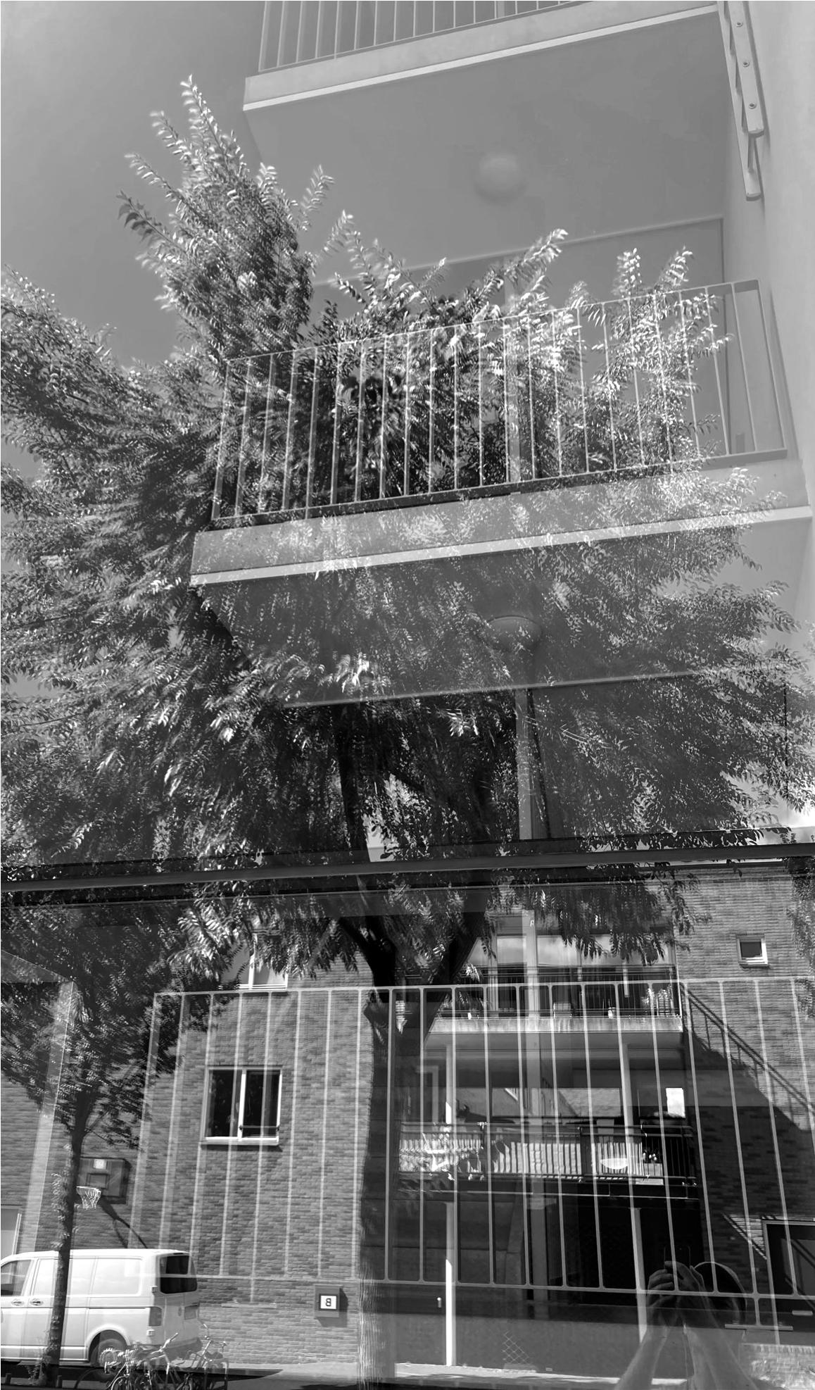 Ik sprak net een mevrouw die me vroeg waarom ik een foto maakte van de portiek. Ik legde uit dat de reflectie van de boom mooi was, vandaar. Zij vertelde dat ze bericht had ontvangen dat er de laatste tijd veel ingebroken wordt en dat de dieven vaak eerst op onderzoek gaan en ook foto’s maken. Waarom weet ik niet precies, maar ze geloofde meteen dat ik geen inbreker was.